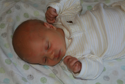 It was a long and uncomfortable pregnancy, but we survived! We went in on the 20th around 1:30pm and Seth was born May 21, 2010 at 1:14am. There were no major complications, except how lousy I was feeling. You can tell by his yellow coloring he had jaundice for the first couple of days and spent a day in nursery under the UV lights. He recovered quickly as did I. Now he's a happy and healthy little boy! Here are picture from his first 8 weeks: